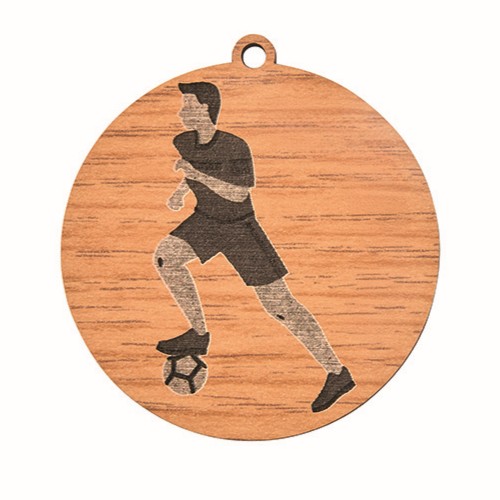 Médaille en bois de diamètre 50mm représentant un joueur de football